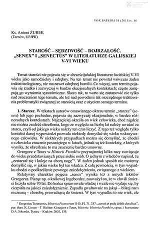 Starość - sędziwość - dojrzałość. "Senex" i "senectus" w literaturze galijskiej V-VI wiekuStarość - sędziwość - dojrzałość. "Senex" i "senectus" w literaturze galijskiej V-VI wieku