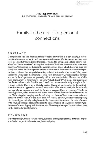 Słowa kluczowe: Media , Cyberseks , Pornografia , Rodzina , Internet , Etyka mediów , Godność