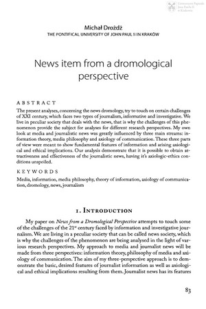 Słowa kluczowe: Media , Informacja , Filozofia mediów , Dziennikarstwo , Dromologia
