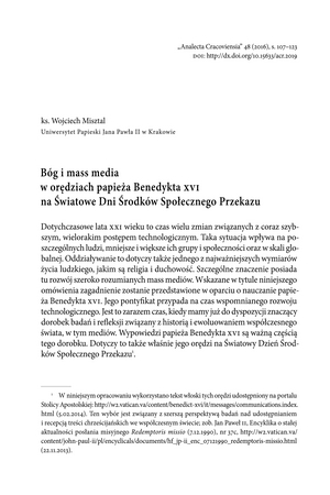 Bóg i mass media w orędziach papieża Benedykta XVI na Światowe Dni Środków Społecznego PrzekazuBóg i mass media w orędziach papieża Benedykta XVI na Światowe Dni Środków Społecznego Przekazu