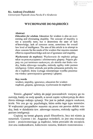 Słowa kluczowe: Głupota , Mądrość , Grzech , Biblia - analiza i interpretacja