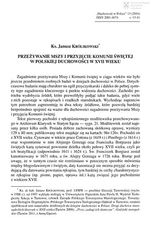 Przeżywanie mszy i przyjęcie Komunii świętej w polskiej duchowości XVII wiekuPrzeżywanie mszy i przyjęcie Komunii świętej w polskiej duchowości XVII wieku