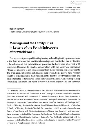 Marriage and the Family Crisis in Letters of the Polish Episcopate after World War IIMarriage and the Family Crisis in Letters of the Polish Episcopate after World War II