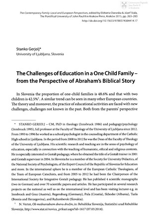 Słowa kluczowe: Dzieci , Jedynak , Abraham , Wychowanie w rodzinie - aspekt religijny