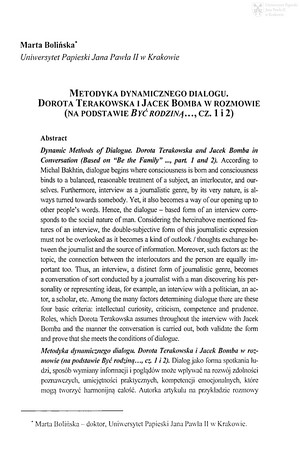Słowa kluczowe: Dialog , Rodzina , Wspólnota , Terakowska, Dorota , Bomba, Jacek