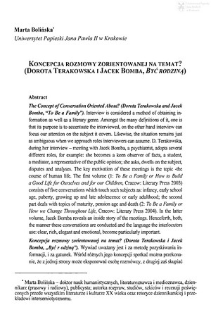 Koncepcja rozmowy zorientowanej na temat? : (Dorota Terakowska i Jacek Bomba, Być rodziną)Koncepcja rozmowy zorientowanej na temat? : (Dorota Terakowska i Jacek Bomba, Być rodziną)