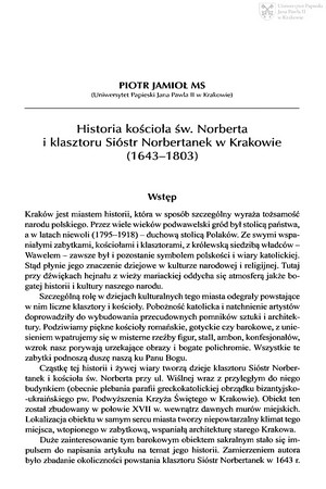 Historia kościoła sióstr Norbertanek w Krakowie (1643-1803)Historia kościoła sióstr Norbertanek w Krakowie (1643-1803)