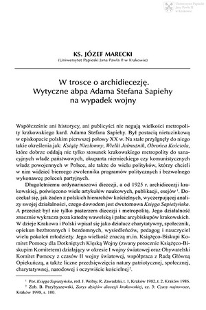 W trosce o archidiecezję : wytyczne abpa Adama Stefana Sapiehy na wypadek wojnyW trosce o archidiecezję : wytyczne abpa Adama Stefana Sapiehy na wypadek wojny