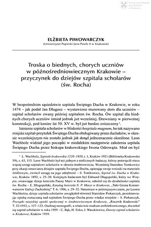 Troska o biednych, chorych uczniów w późnośredniowiecznym Krakowie - przyczynek do dziejów szpitala scholarów (św. Rocha)Troska o biednych, chorych uczniów w późnośredniowiecznym Krakowie - przyczynek do dziejów szpitala scholarów (św. Rocha)