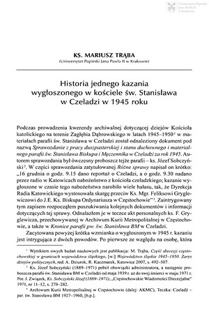 Historia jednego kazania wygłoszonego w kościele św. Stanisława w Czeladzi w 1945 r.Historia jednego kazania wygłoszonego w kościele św. Stanisława w Czeladzi w 1945 r.