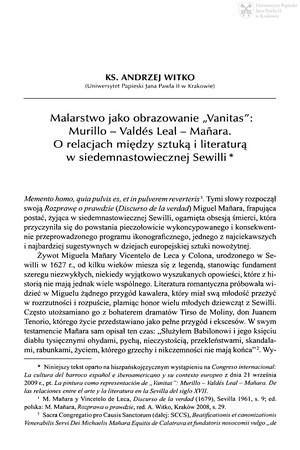 Malarstwo jako obrazowanie "Vanitas": Murillo-Valdes Leal-Manara : o relacjach między sztuką i literaturą w siedemnastowiecznej SewilliMalarstwo jako obrazowanie "Vanitas": Murillo-Valdes Leal-Manara : o relacjach między sztuką i literaturą w siedemnastowiecznej Sewilli