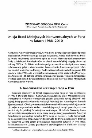 Misja Braci Mniejszych Konwentualnych w Peru w latach 1988-2010Misja Braci Mniejszych Konwentualnych w Peru w latach 1988-2010