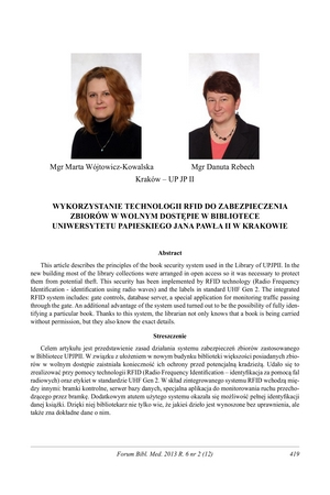 Wykorzystanie technologii RFID do zabezpieczenia zbiorów w wolnym dostępie w Bibliotece Uniwersytetu Papieskiego Jana Pawła II w KrakowieWykorzystanie technologii RFID do zabezpieczenia zbiorów w wolnym dostępie w Bibliotece Uniwersytetu Papieskiego Jana Pawła II w Krakowie