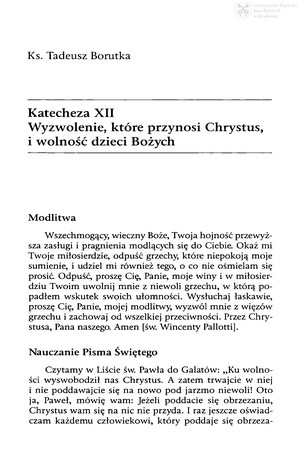Słowa kluczowe: Kazania katechizmowe , Wolność człowieka , Zbawienie
