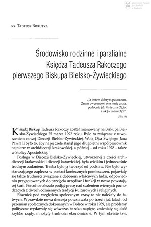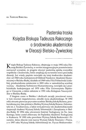 - Borutka, Tadeusz (1953-), Troska Księdza Biskupa Tadeusza Rakoczego o rozwój życia naukowego ludzi świeckich w Diecezji Bielsko-Żywieckiej