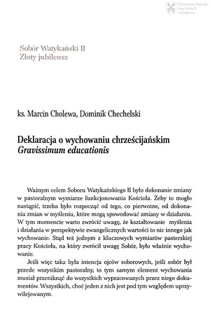 Słowa kluczowe: Sobór Watykański II , Deklaracja o wychowaniu chrześcijańskim Gravissimum educationis , Gravissimum educationis