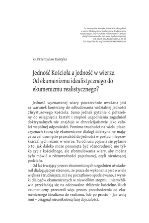 Jedność Kościoła a jedność w wierze.Od ekumenizmu idealistycznego do ekumenizmu realistycznego?Jedność Kościoła a jedność w wierze.Od ekumenizmu idealistycznego do ekumenizmu realistycznego?