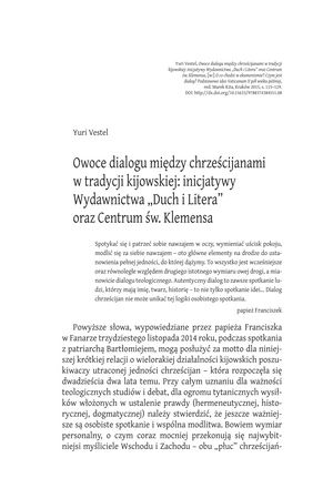 Owoce dialogu między chrześcijanami w tradycji kijowskiej: inicjatywy Wydawnictwa „Duch i Litera” oraz Centrum św. KlemensaOwoce dialogu między chrześcijanami w tradycji kijowskiej: inicjatywy Wydawnictwa „Duch i Litera” oraz Centrum św. Klemensa
