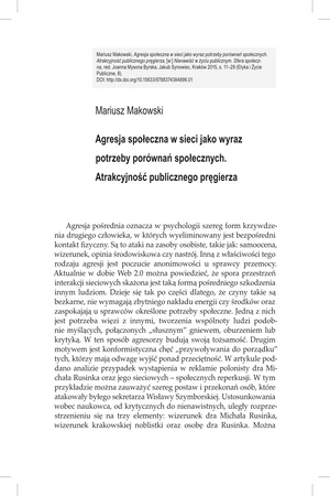 Agresja społeczna w sieci jako wyraz potrzeby porównań społecznych. Atrakcyjność publicznego pręgierzaAgresja społeczna w sieci jako wyraz potrzeby porównań społecznych. Atrakcyjność publicznego pręgierza