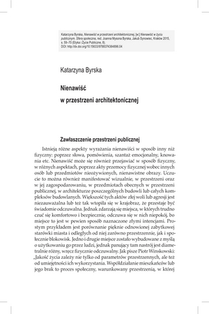 Słowa kluczowe: Przestrzeń społeczna , Przestrzeń architektoniczna , Nienawiść