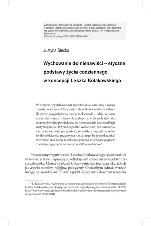 Wychowanie do nienawiści – etyczne podstawy życia codziennego w koncepcji Leszka KołakowskiegoWychowanie do nienawiści – etyczne podstawy życia codziennego w koncepcji Leszka Kołakowskiego