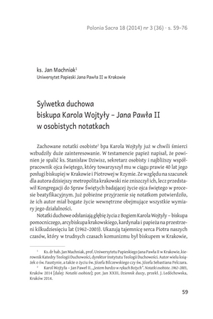 Sylwetka duchowa biskupa Karola Wojtyły – Jana Pawła II w osobistych notatkachSylwetka duchowa biskupa Karola Wojtyły – Jana Pawła II w osobistych notatkach