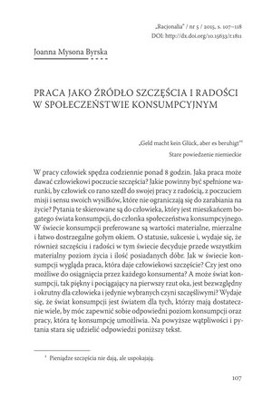 Słowa kluczowe: Praca , Szczęście , Społeczeństwo konsumpcyjne