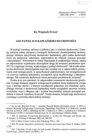 Słowa kluczowe: Duchowość kapłańska , Jan Paweł II (papież ; 1920-2005) - nauczanie
