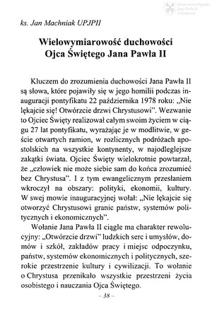 Wielowymiarowość duchowości Ojca Świętego Jana Pawła IIWielowymiarowość duchowości Ojca Świętego Jana Pawła II