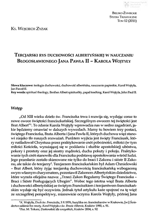 Tercjarski rys duchowości albertyńskiej w nauczaniu błogosławionego Jana Pawła II - Karola WojtyłyTercjarski rys duchowości albertyńskiej w nauczaniu błogosławionego Jana Pawła II - Karola Wojtyły