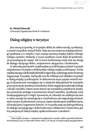 Słowa kluczowe: Dialog międzyreligijny , Dialog międzykulturowy , Turystyka
