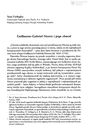 Guillaume-Gabriel Nivers (ok. 1632–1714) – ostatni z „przedklasyków” czy pierwszy z klasyków?Guillaume-Gabriel Nivers (ok. 1632–1714) – ostatni z „przedklasyków” czy pierwszy z klasyków?