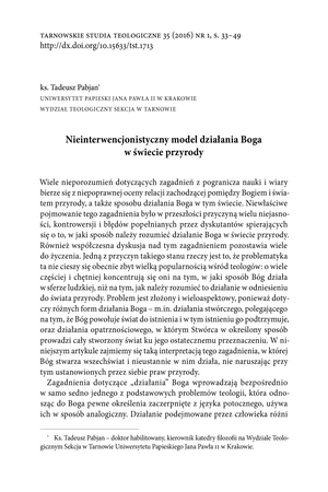 Nieinterwencjonistyczny model działania Boga w świecie przyrodyNieinterwencjonistyczny model działania Boga w świecie przyrody