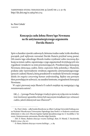 Koncepcja cudu Johna Henry’ego Newmana na tle antytaumaturgicznego argumentu Davida Hume’aKoncepcja cudu Johna Henry’ego Newmana na tle antytaumaturgicznego argumentu Davida Hume’a