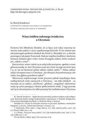 Wiara źródłem radosnego świadectwa o ChrystusieWiara źródłem radosnego świadectwa o Chrystusie