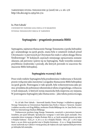 Słowa kluczowe: Septuaginta , Stary Testament , Nowy Testament , Tłumaczenie