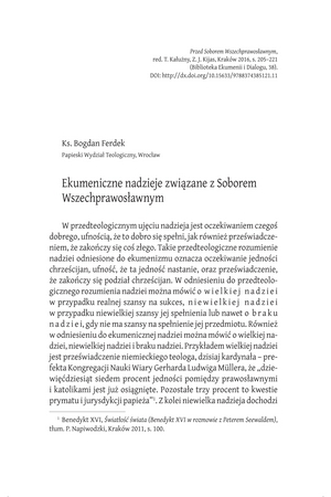 Ekumeniczne nadzieje związane z Soborem WszechprawosławnymEkumeniczne nadzieje związane z Soborem Wszechprawosławnym