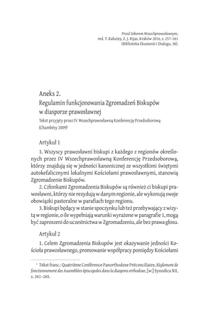 Aneks 2 : Regulamin funkcjonowania Zgromadzeń Biskupów w diasporze prawosławnejAneks 2 : Regulamin funkcjonowania Zgromadzeń Biskupów w diasporze prawosławnej