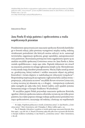 Jana Pawła II wizja państwa i społeczeństwa a realia współczesnych przemianJana Pawła II wizja państwa i społeczeństwa a realia współczesnych przemian