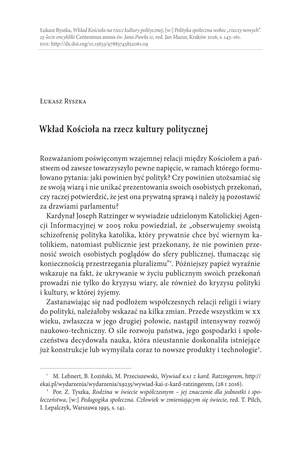 Wkład Kościoła na rzecz kultury politycznejWkład Kościoła na rzecz kultury politycznej