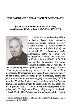 Śp. ks. Karol Mrowiec CM (1919-2011) : wykładowca ITKM w latach 1947-1962, 1972/1973Śp. ks. Karol Mrowiec CM (1919-2011) : wykładowca ITKM w latach 1947-1962, 1972/1973