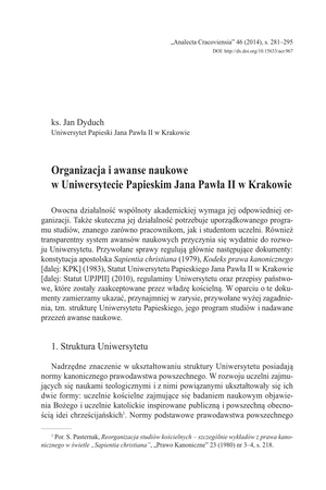 Organizacja i awanse naukowe w Uniwersytecie Papieskim Jana Pawła II w KrakowieOrganizacja i awanse naukowe w Uniwersytecie Papieskim Jana Pawła II w Krakowie