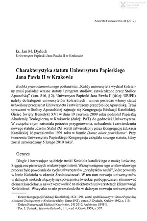 Słowa kluczowe: Uniwersytet Papieski Jana Pawła II w Krakowie , Statut