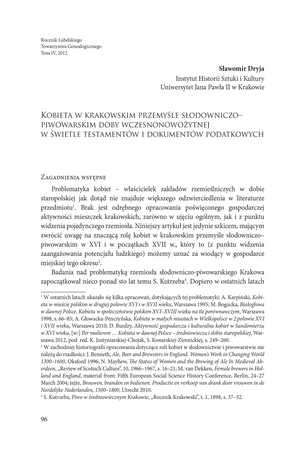 Kobieta w krakowskim przemyśle słodowniczo-piwowarskim doby wczesnonowożytnej w świetle testamentów i dokumentów podatkowych