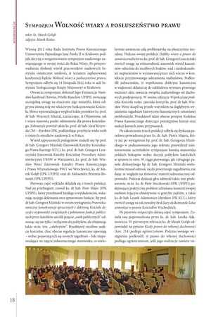 Sympozjum "Wolność wiary a posłuszeństwo prawu" : sprawozdanie