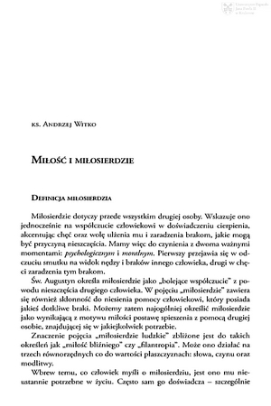 Słowa kluczowe: Miłosierdzie Boże , Miłość