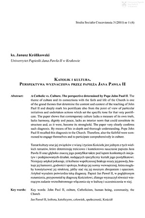 Słowa kluczowe: Jan Paweł II (papież ; 1920-2005) - nauczanie , Kultura , Katolicyzm