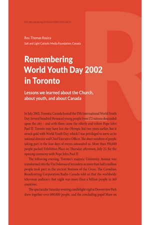 Remembering World Youth Day 2002 in Toronto : Lessons we learned about the Church, about youth, and about CanadaRemembering World Youth Day 2002 in Toronto : Lessons we learned about the Church, about youth, and about Canada