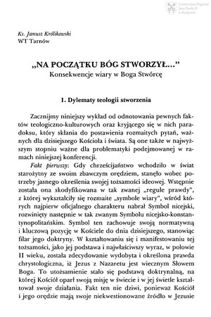 "Na początku Bóg stworzył..." : konsekwencje wiary w Boga Stwórcę"Na początku Bóg stworzył..." : konsekwencje wiary w Boga Stwórcę