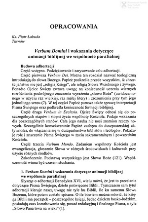 Verbum Domini i wskazania dotyczące animacji biblijnej we wspólnocie parafialnejVerbum Domini i wskazania dotyczące animacji biblijnej we wspólnocie parafialnej